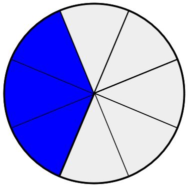Im Bild sind \(\frac{1}{4}+\frac{1}{8} = \frac{3}{8}\) gefärbt. Wenn man nochmal den gleichen Anteil färbt bleibt nur ein Viertel übrig, also ist der gefärbte Anteil mehr als ein Drittel. (Andere Erklärungen sind auch möglich!) |