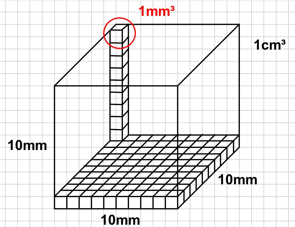 mm³ - cm³ - dm³ - m³ - km³ , Liter(l) und Milliliter (ml) Kubikmillimeter, Kubikzentimeter, ... 1 l = 1dm³ und 1 ml = 1cm³ |